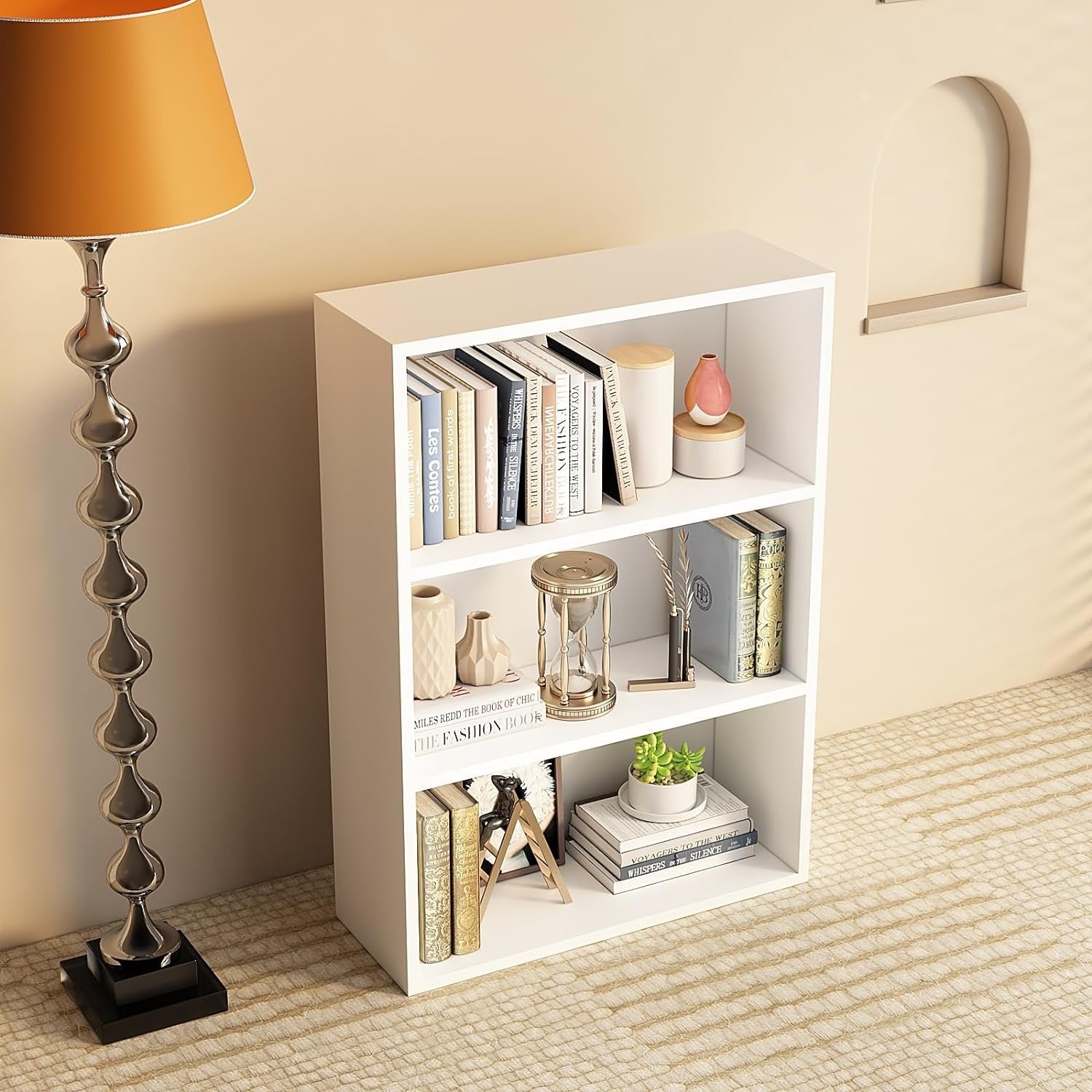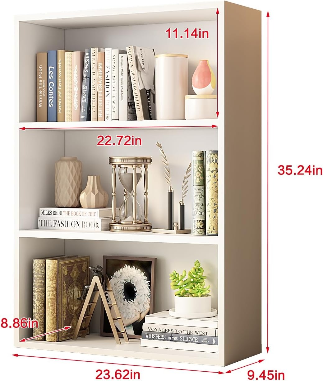 - SAVING SPACE - Small Bookshelf for small spaces. The simple upright and open design of the book shelves can help you to save much more space. It can reduce clutter and create a neat and comfortable living environment for your home. this 3 shelf cube storage shelf can meet your different needs.