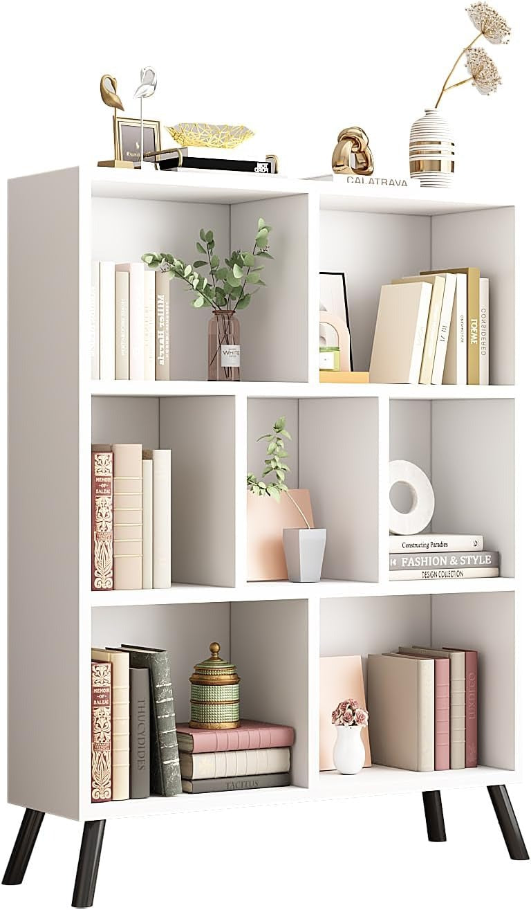 7 Cube Bookshelf, 3 Tier Open Shelf Bookcase with Legs