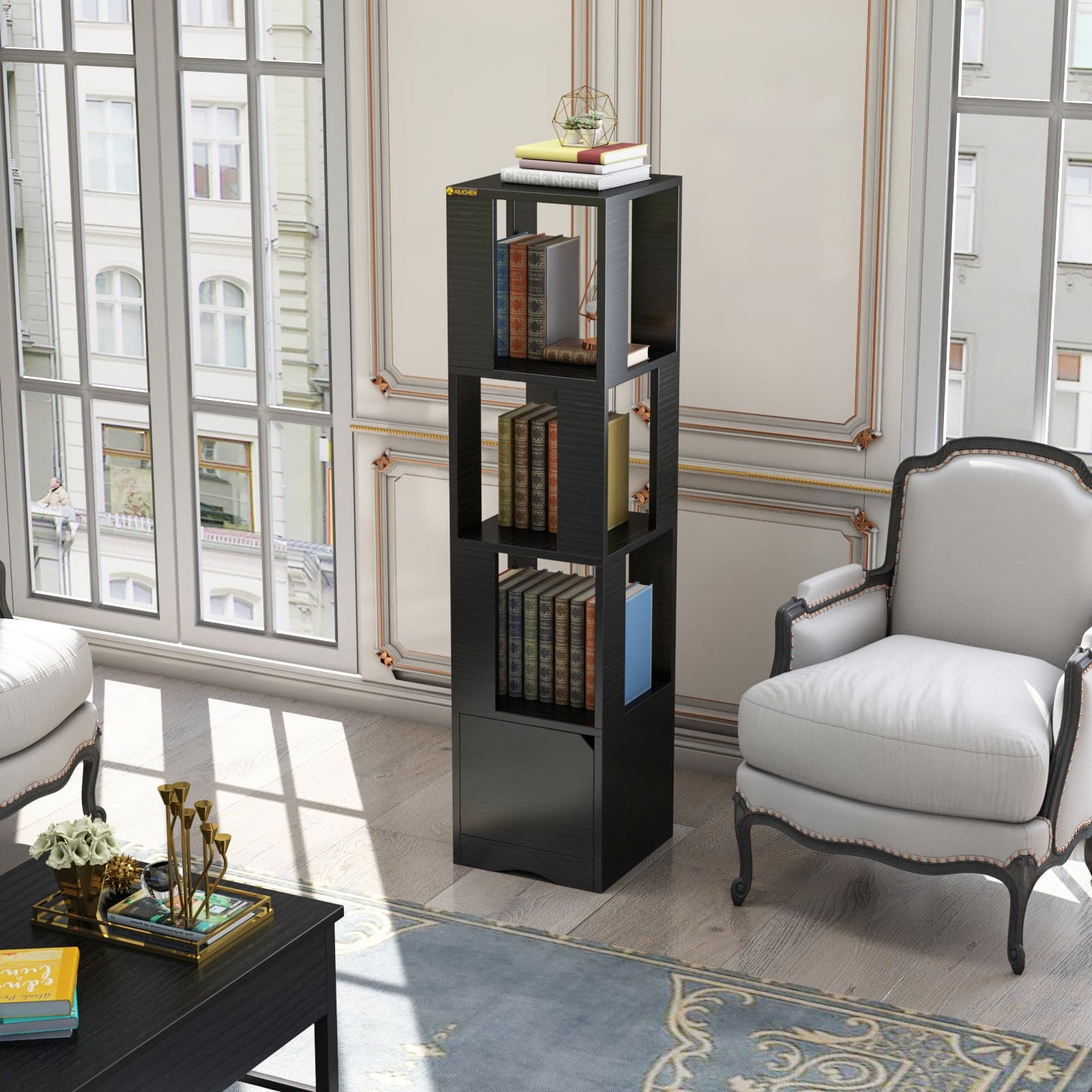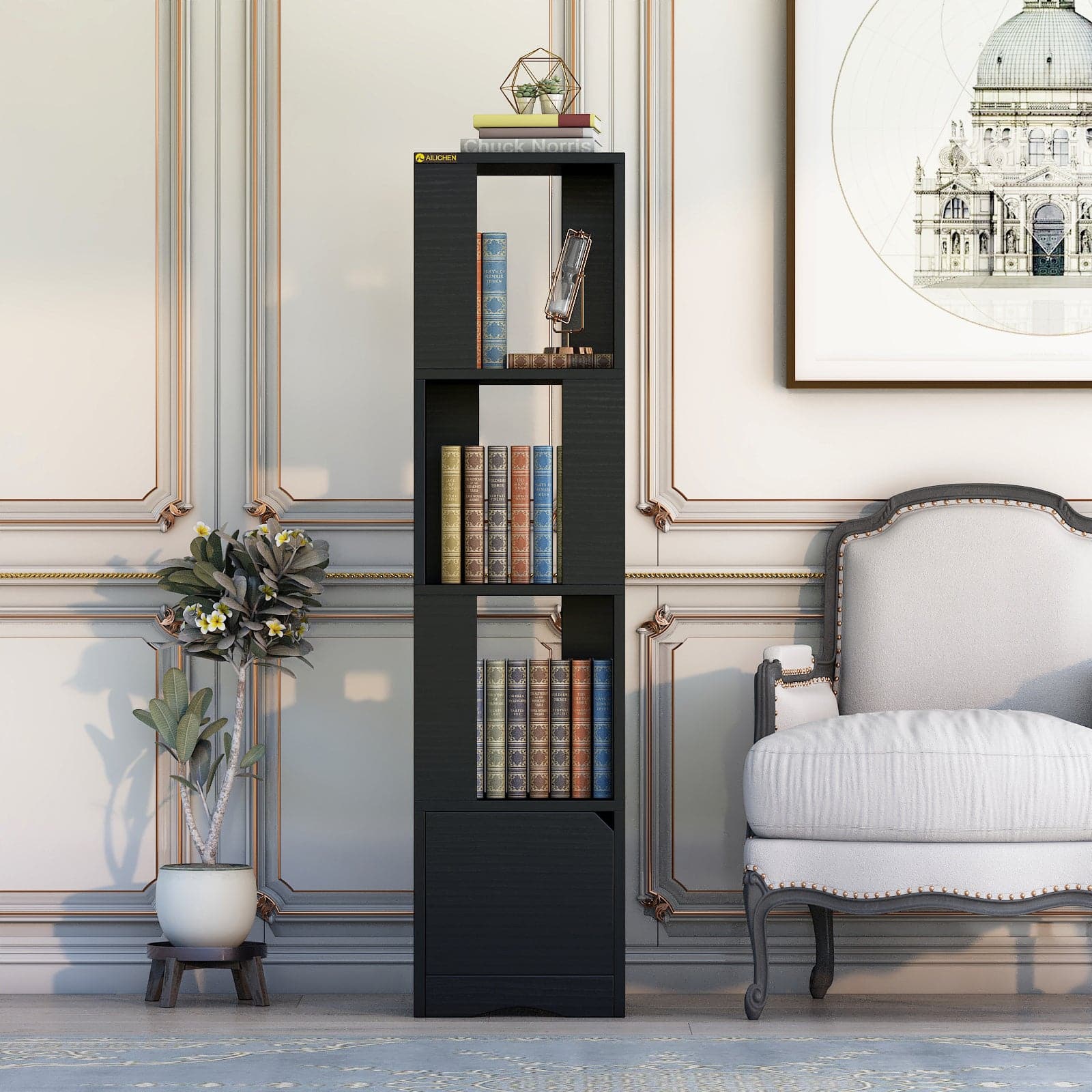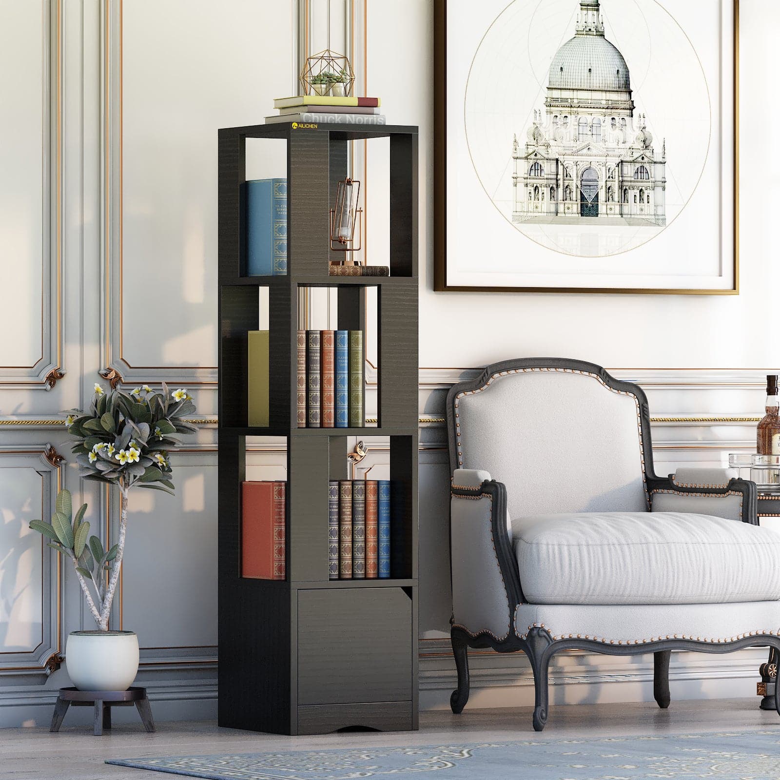 - MEET YOUR STORAGE NEEDS: This bookcase has a storage cabinet and 2 tall shelves, which provides enough storage space for books, picture frames, wine sets, pillows, and the more large item you want to collect and display. And the closed storage rooms behind doors can maintain your items clean and dry while protecting your privacy