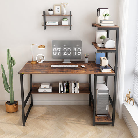 Computer Desk with 4-Tier Storage Shelves Modern Large Office Desk