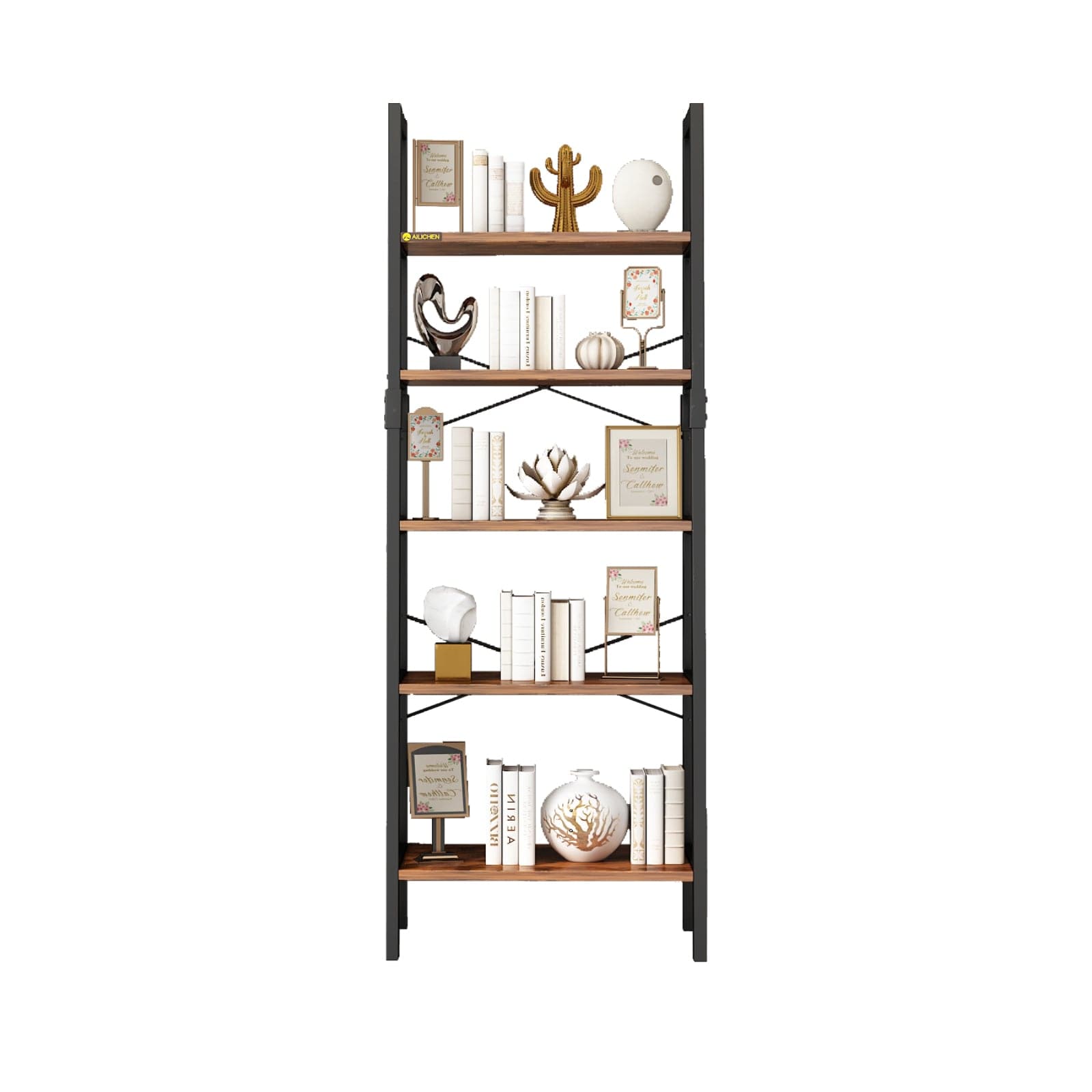 Industrial 5-Tier Bookshelf Wood Look Accent Metal Frame