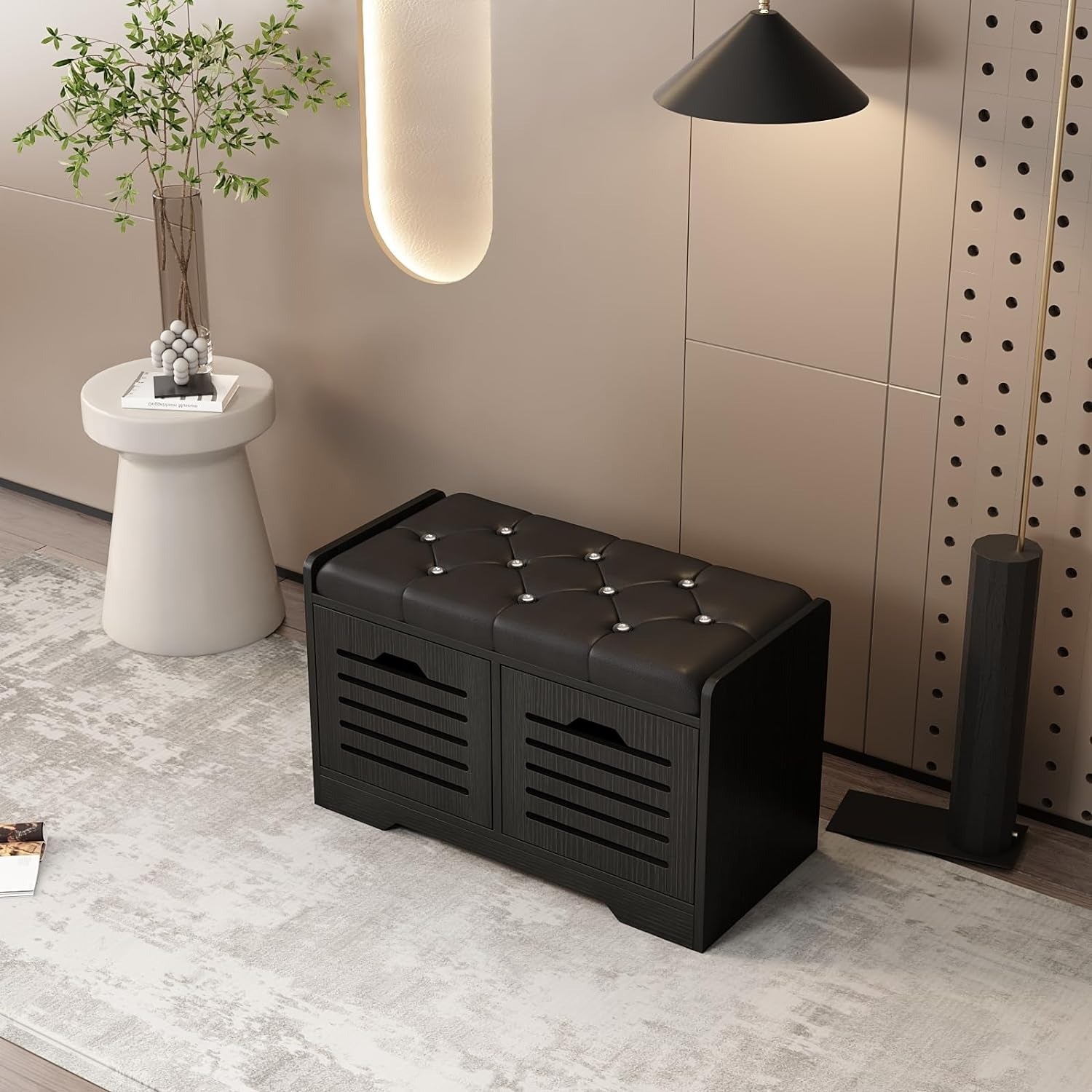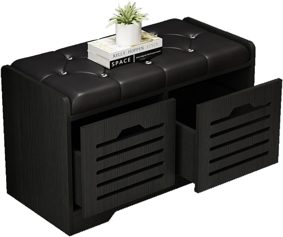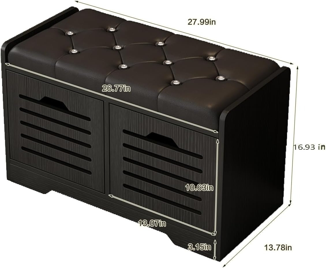 - 【Cushioned Seat】Come home and take a seat on the comfortable cushion on top of this shoe bench with storage after a long day at work, it is covered by Soft artificial leather and filled with soft foam.